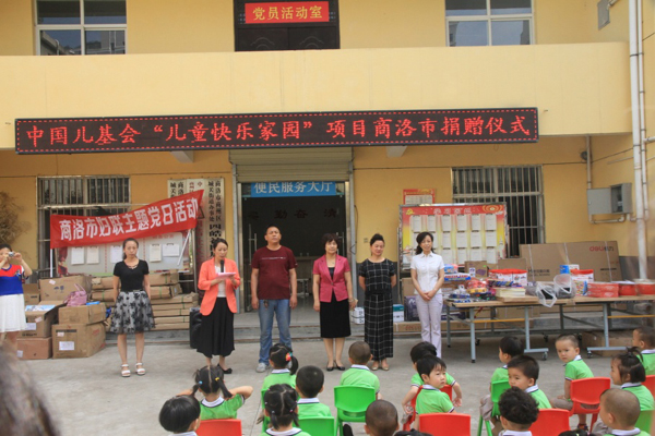 开展结对共建,实施项目带动。为商州区城关镇四皓社区争取到中国儿基会“儿童快乐家园”项目,6月22日,举办捐赠仪式,共捐赠电视、电脑、投影仪、照相机、打印机、书柜、桌椅板凳、乐器、书画、玩具、体育用品、图书等价值9万元的项目配置设施,将充分发挥“社区儿童快乐家园”作用,使社区真正成为学习娱乐、亲子交流的乐园。